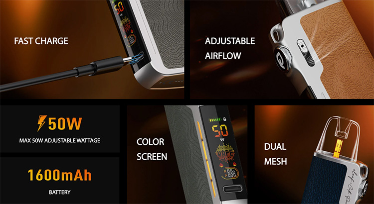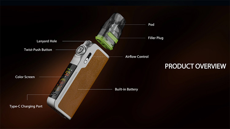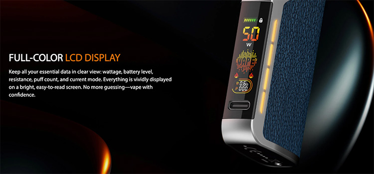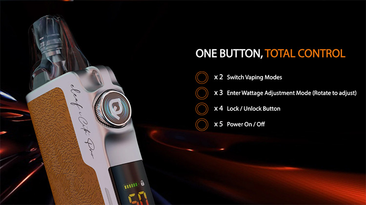Η πλήρης έγχρωμη LCD οθόνη εμφανίζει όλες τις απαραίτητες πληροφορίες, όπως wattage, στάθμη μπαταρίας, αντίσταση, puff counter και ενεργό mode. Ο έξυπνος χειρισμός με ένα κουμπί, που λειτουργεί με πάτημα ή περιστροφή, κάνει τη χρήση απλή και πρακτική, ενώ η ρύθμιση της ροής αέρα είναι συνεχής και ακριβής για να καλύπτει κάθε προτίμηση, είτε ατμίζεις MTL είτε DTL.